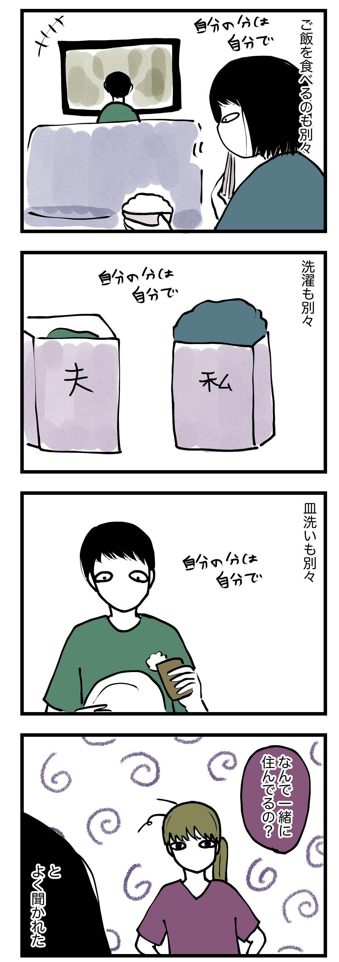 【家庭内ルームシェア】結婚生活?(後編) 2022年08月23日 歳の差16歳、社会不適合同士の子なし夫婦です。初めての方はこちらから歳の差の話はこちらから選択子なしの話はこちらから別居の話はこちらから前回の続きです。 私たちは現在別居中ですが、同居だった頃も結婚生活というよりはルームシェアみたいな感じでした。一緒にいたいからだよ。ご飯はたまに夫くんが作ってくれることもありますが、その時の材料はもちろん私が購入した食材から。結婚した夫婦が一つ屋根の下で一緒に生活している。というよりは大人1人と大人1人、合わせて2人が1つの家に住んでいる。という感じでした。気楽でとても良いです。こちらもどうぞ にほんブログ村 ご連絡はmochizukiyt@gmail.comへ 「家庭内ルームシェア」カテゴリの最新記事 タグ :#ルームシェア#歳の差 < 前の記事次の記事 >