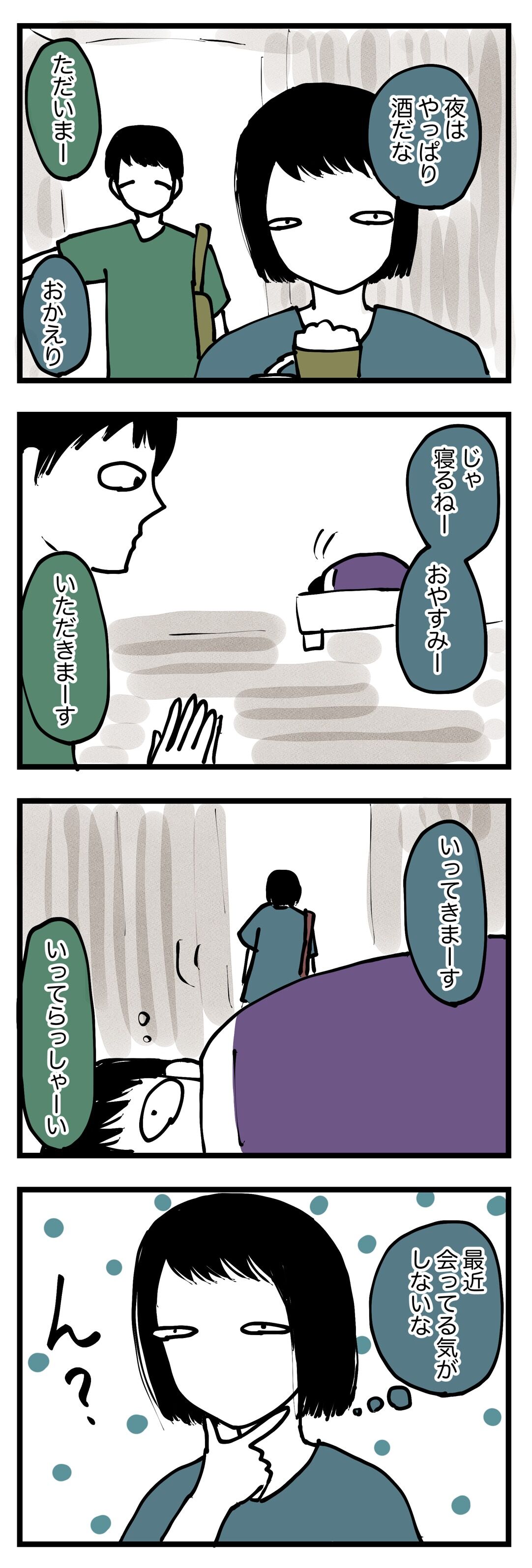 【家庭内ルームシェア】生存だけ確認してる 2022年08月28日 歳の差16歳、社会不適合同士の子なし夫婦です。初めての方はこちらから歳の差の話はこちらから選択子なしの話はこちらから別居の話はこちらから私たち夫婦は現在別居中ですが、以前同居していたときも、結婚生活というよりルームシェアのような感じでした。家庭内ルームシェアシリーズ 前回の話 一度すれ違うと、なかなか合わないよね。こちらもどうぞ にほんブログ村 ご連絡はmochizukiyt@gmail.comへ 「家庭内ルームシェア」カテゴリの最新記事 タグ :#ルームシェア#歳の差 < 前の記事次の記事 >