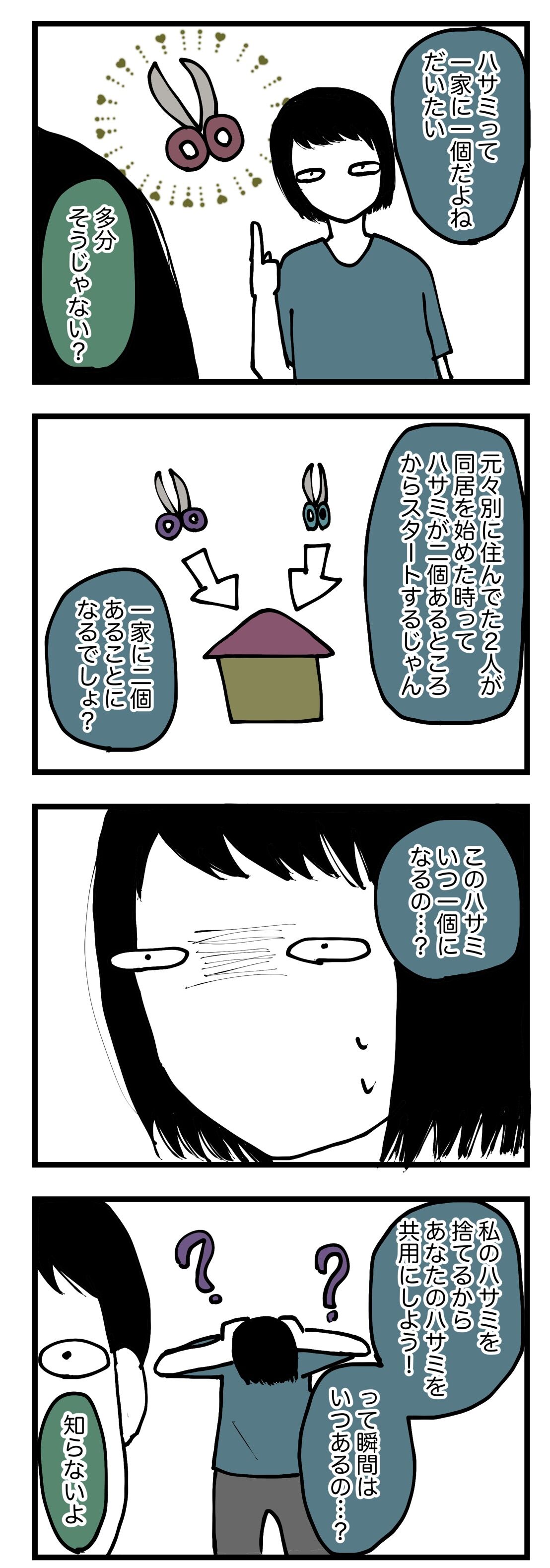 「ハサミって普通一家に1個じゃないよ。共有のも個人のも合わせたら大量にあるよ。」というご指摘をいただき、とてもびっくりしました。そうなの…!?