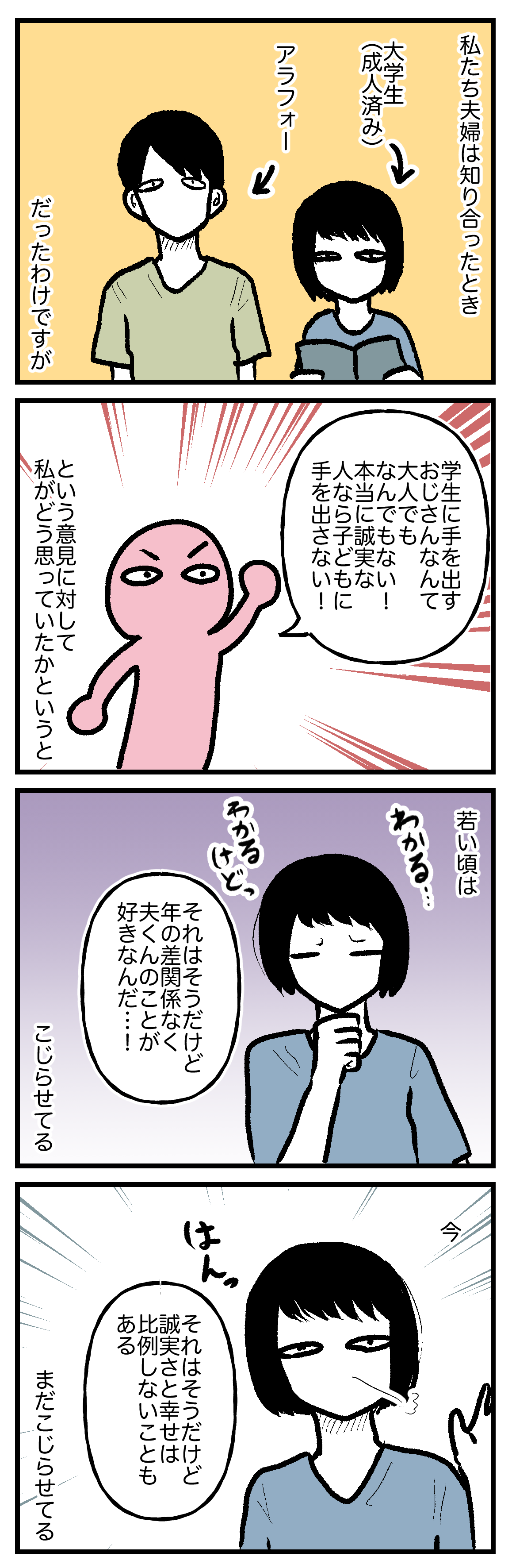 学生に手を出す大人 2024年10月03日 自己紹介昨日の記事 本日の記事学生とおじさんの年の差恋愛問題。様々な意見がありますし私も思うところはいろいろありますがまぁうちはもう結婚しちゃったし。幸せだし。夫くんは誠実じゃないのかもしれないけれど私も別に誠実な人間じゃないしはぁ〜どっこいどっこい!ってことで。 ★ランキング参加中です。ポチっと1回クリックで投票できます。何卒よしなに。★SNSやっています。★アプリで更新通知が届きます。★LINEスタンプ販売中★ 「歳の差」カテゴリの最新記事 < 前の記事次の記事 >